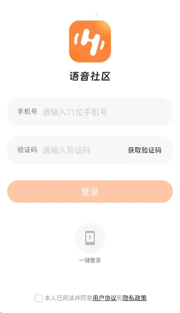 1、打开语音社区app,点击同意隐私政策