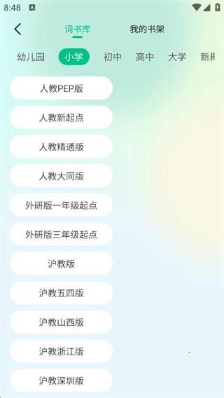 1. 全学段教材覆盖:纳米盒同步单词安卓版覆盖小学至大学全学段,与人教、外研、沪教等150余种主流教材版本实现课本单词1:1同步,让学习无遗漏。