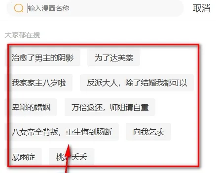2、在这里输入漫画名称。