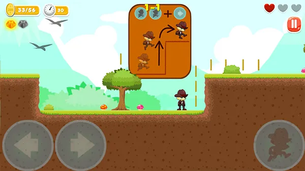 3、在悬空障碍物面前则按住右箭头同时,连续按两次按键来操控角色跳跃过去
