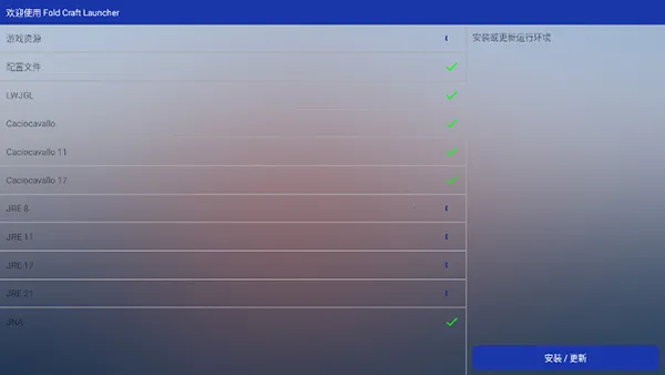 3、点击安装/更新,在线安装/更新运行环境。