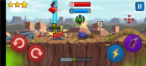 这款游戏以卡通休闲风格呈现2D横版赛车竞速玩法,围绕汽车吞噬展开。核心玩法是操控带钢牙的汽车收集红宝石和道具,吞噬或摧毁其他车辆冲终点。**车辆种类丰富**,有跑车、卡车、警车等,各有独特撞击和冲刺能力。还支持技能装配系统,如导弹、冻结射线、电磁炮等技能,能让赛车更具竞争力。驾驶时要留意路况选平坦道路。关卡会指定特定赛车,需根据特点策略选择。游戏玩法简单,左侧控重心,右侧管加速和放炸弹,途中有障碍和路道设计。能收集增益道具改装赛车,开局有抽奖系统增加可玩性,适合喜欢快节奏竞技的玩家。