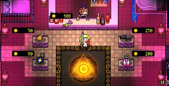 神秘的兔女郎字母姐所经营的道具商店武器、宝物、道具都会随机进行陈列贩卖,用获得的金币来消费既可进行购买了。