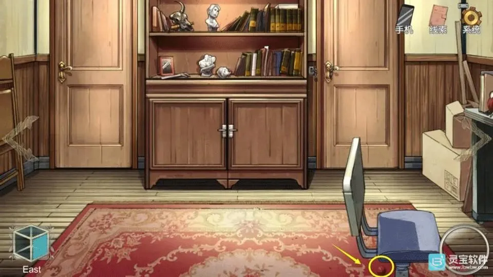 1、椅子下面得到【红色小球】,调查书架,得到【白羊座硬币】【铁十字】